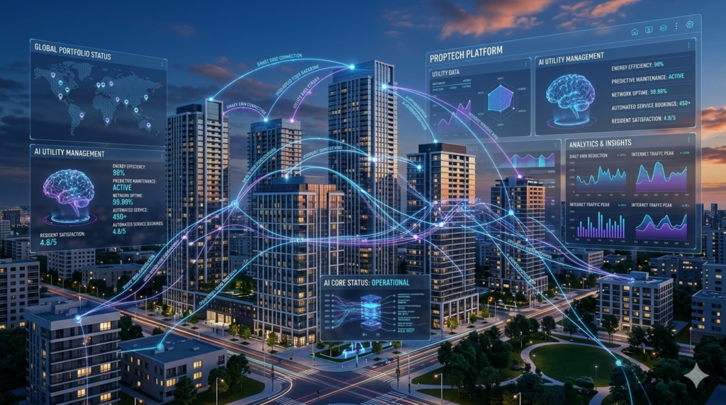 The platform enables seamless utility connections, automated workflows, and real-time insights into property services and household expenses.